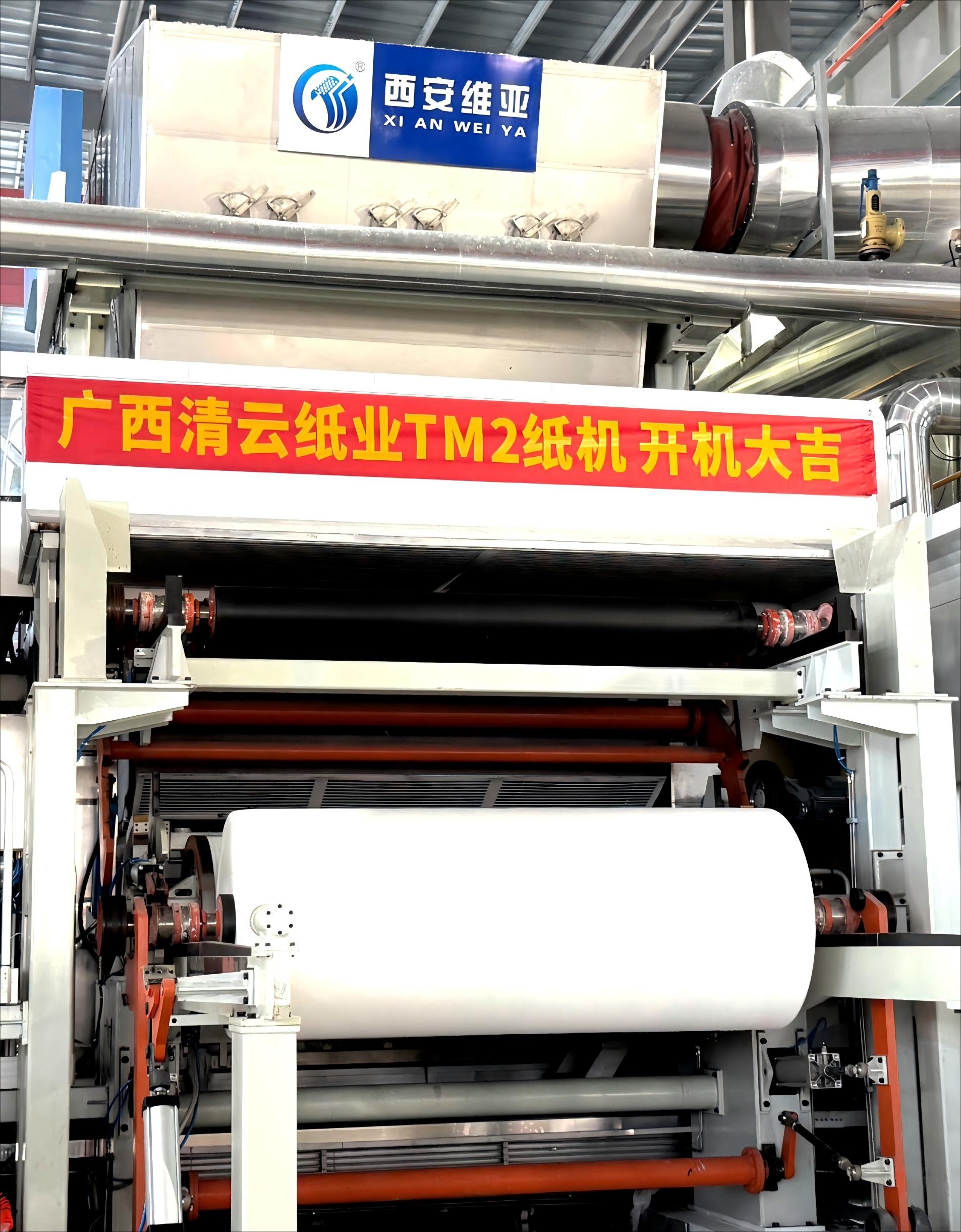 近日,我公司為國內客戶交付的新月型衛生紙機接連傳來開機喜訊:2025年6月22日: 為清云紙業定制的新月型28...